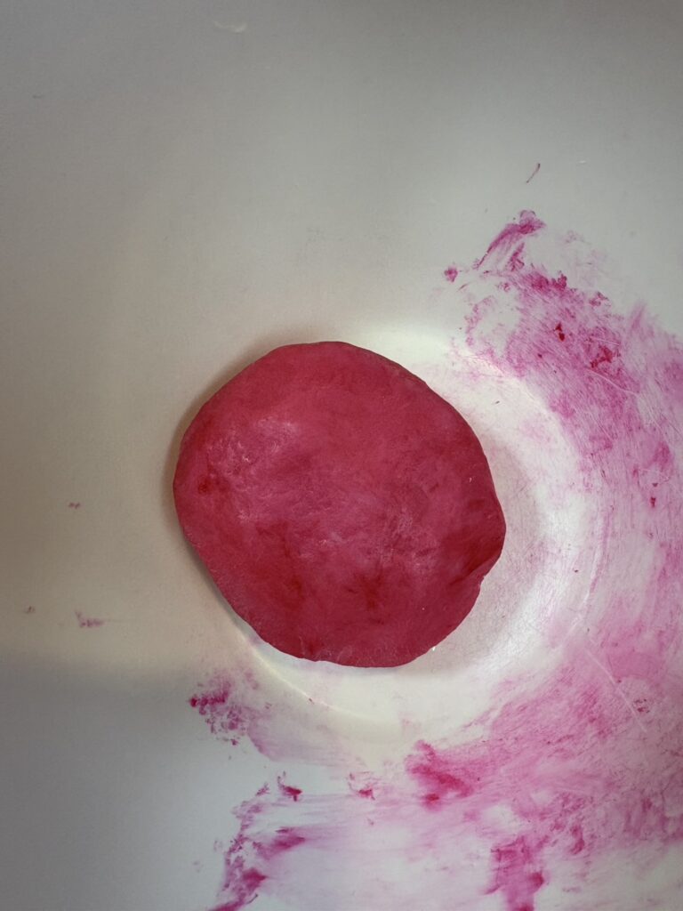 ②ボールから出してバターを入れてバターがなじむまでこねる。(こねすぎないこと)