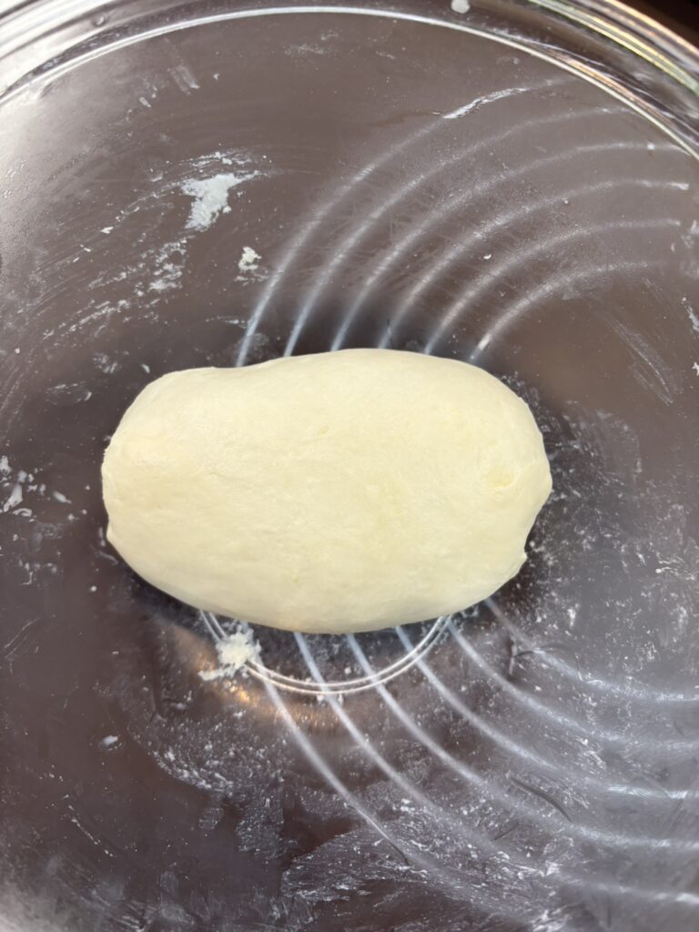 ②ボールから出してバターを入れてバターがなじむまでこねる。(こねすぎないこと)